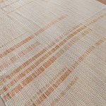 Designed for continuity of use over the changing phases of life with little ones, Analemma starts as a long wrap that can be converted into a skirt and ring sling (the ring sling itself can be further converted into a skirt when the babywearing years are done.) If you look closely, you can see that along the rails are tiny woven in markers as reference points for future skirt panels – this is because the seemingly random placement of lines in the weave will all emerge from the bottom hem of the skirt in the textile’s final form.