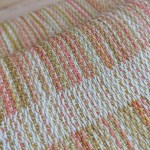 Analemma is woven in turned taqueté, so that the opposite face of the fabric shows the same pattern in inverted colors. This means the wrap, and later the ring sling and the skirt, are all reversible. The dominant face swaps at the middle marker, which itself can alternately become a cowl piece (if shorter RS’s or smaller skirts are desired).